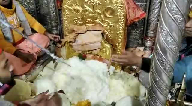 बज्रेश्वरी मंदिर कांगड़ा मकर सक्रांति पर जिला स्तरीय घृत मंडल पर्व की मक्खन चढ़ाने की प्रक्रिया पुजारियों ने की शुरु।