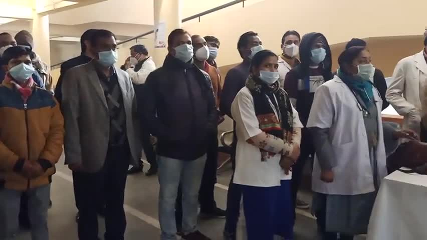 कोल: कोरोना वैक्सीन की शुरुआत से पहले प#PM MODI के संबोधन को सुनते पंडित दीनदयाल अस्पताल के स्वास्थ्य कर्मी #Aligarh