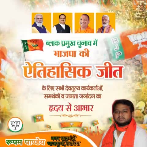 ब्लाक प्रमुख चुनाव में भाजपा की ऐतिहासिक जीत के लिए सभी कार्यकर्ताओं, समर्थकों व जनता का हृदय से आभार। #भाजपा_का_पंच