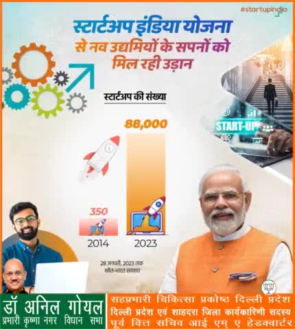 नए भारत के निर्माण में महत्वपूर्ण भूमिका निभा रही स्टार्टअप इंडिया योजना। 2014 में 350 स्टार्टअप थे, जो अब बढ़कर देश भर में 88,000 से अधिक हो गए हैं।