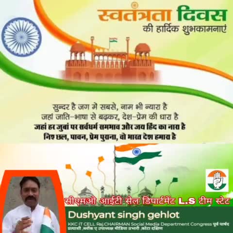 समस्त देशवासियों को स्वतंत्रता दिवस की हार्दिक बधाई एवं शुभकामनाएं