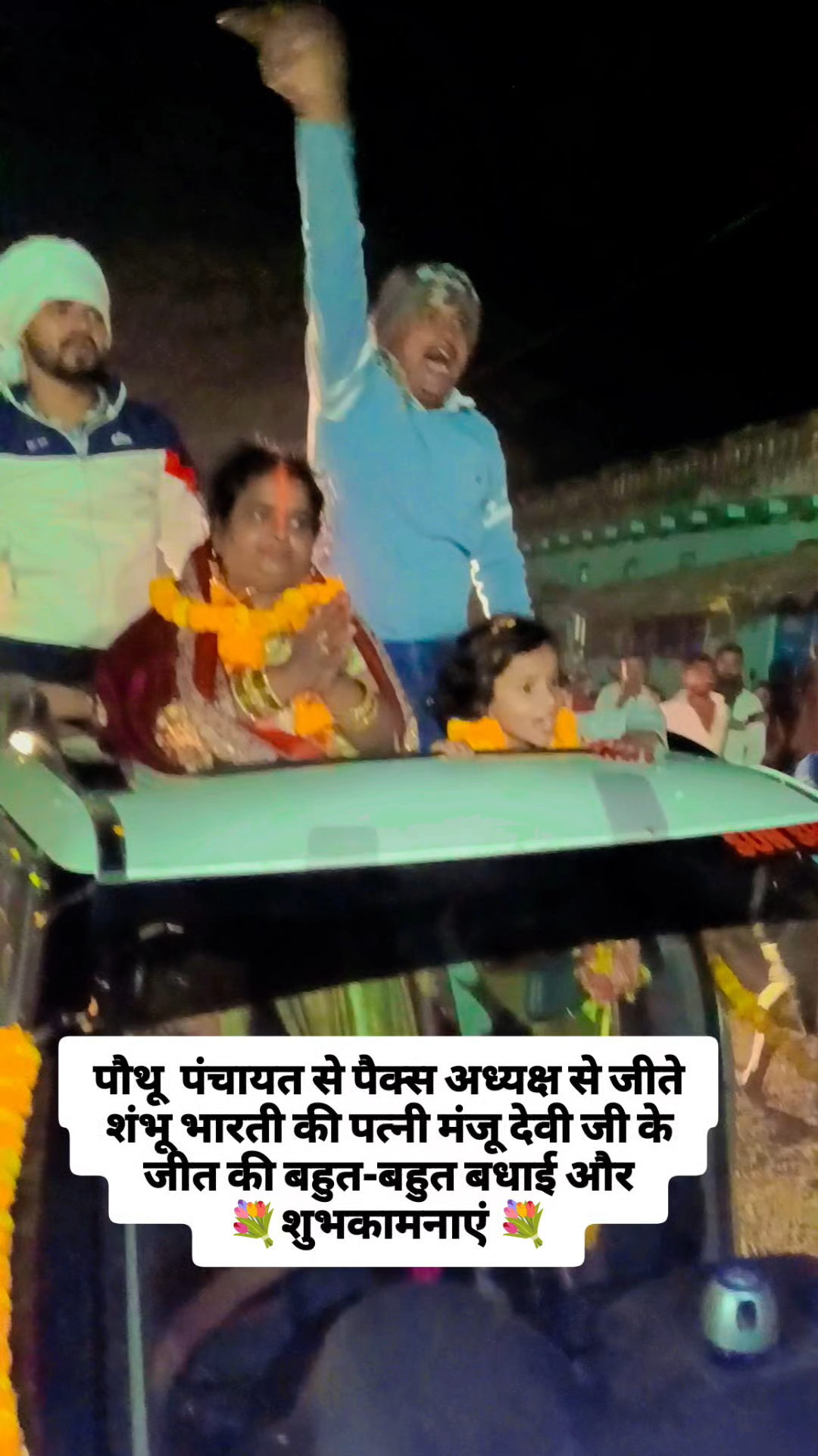 पैथू पंचायत से पैक्स अध्यक्ष से जीते Sambhu Kumar Bharti जी की पत्नी मंजू देवी ने 694 वोट से जीत की बहुत-बहुत बधाई 💐