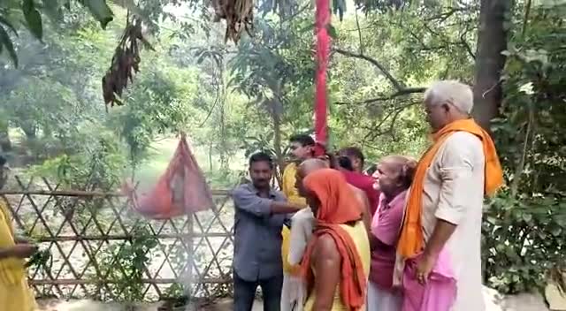 महुआ प्रखंड के गद्दोपुर में स्थित केशवानंद स्वामी जी के परिसर में गुरुवार को विष्णु महायज्ञ को लेकर हुआ ध्वजारोहण ।