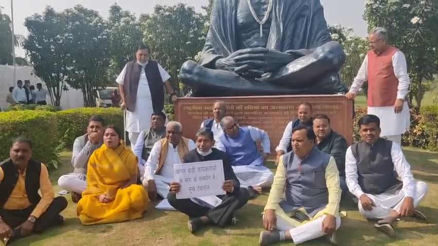 विधानसभा परिसर में प्रदेश सरकार प्रधानमंत्री आवास छीने जाने पर भारतीय जनता पार्टी के विधायकों का धरना..