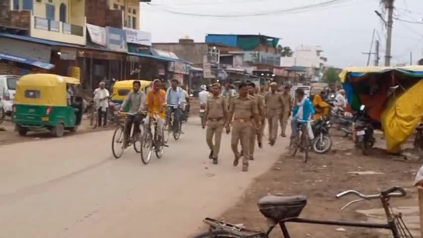 भदोही: जिले के चौरी बाज़ार में पुलिस ने सुरक्षा व्यवस्था को लेकर किया पैदल गश्त