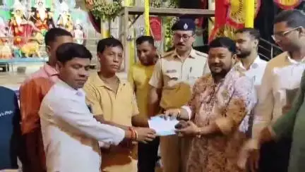 হেমতাবাদ: কাকরশিং দুর্গাপুজো কমিটির হাতে আর্থিক অনুদান প্রদান