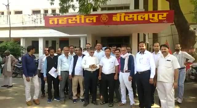 नायब तहसीलदार शशांक सिंह की गिरफ्तारी के लिए अड़े बीसलपुर के अधिवक्ता। तहसील बीसलपुर में एकत्रित होकर किया प्रदर्शन#@