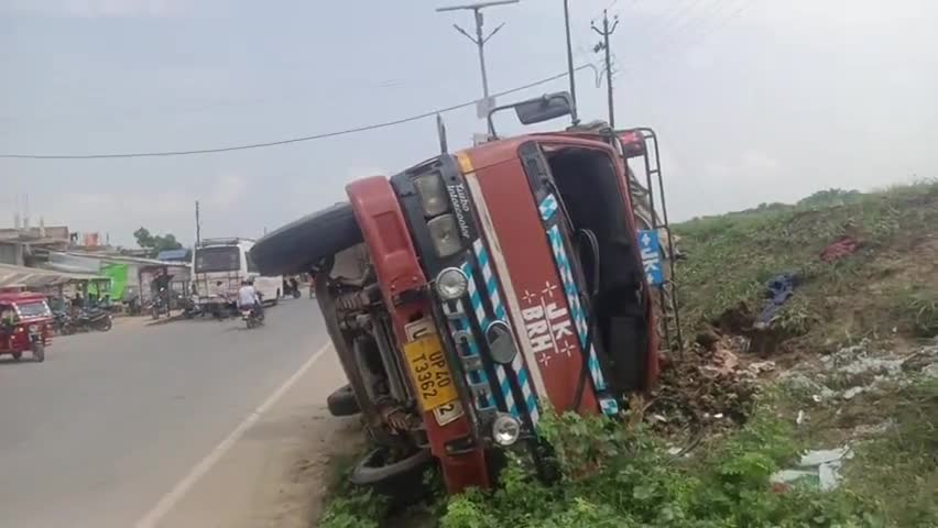 बांसी: रानीगंज तिराहे पर अनियंत्रित होकर पलटी डीसीएम, चालक को आई चोटें