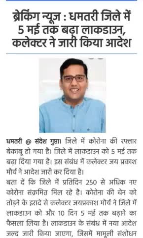 माननीय कलेक्टर साहब श्री जय प्रकाश मौर्य जी ने बढ़ाया 5 मई तक तालाबंदी(लॉक डाउन) सुबह 8 से 10 जरूरी सामग्री की दुकान खुले