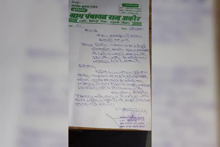 बेनीपट्टी: बेनीपट्टी के अकौर पंचायत मे भारी बर्फबारी तूफान के कारण हुई छतिग्रस्त का मुआवजा के लिए मुखिया ने CO को दिया आवेदन।