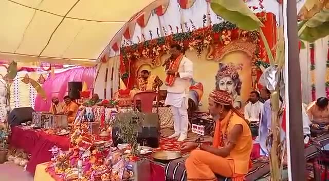 # राजिमविधानसभा क्षेत्र के ग्राम भेंड्री में श्रीमद् भागवत महापुराण यज्ञ विशाल आयोजन में सम्मिलित वेद व्यास के रूप में विराजमान पंडित श्रद्धेय श्री त्रिभुवन महाराज जी एवं गांव के बड़े बुजुर्ग से आशीर्वाद प्राप्त कर जनमानस को संबोधित किया।