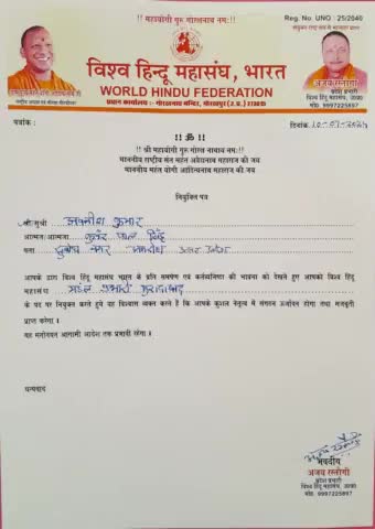 समाजसेवी अवनीश कुमार चौहान को गोरखनाथ मंदिर गोरखपुर से मिला आशीर्वाद! बनाया गया मंडल प्रभारी, मुरा. विश्व हिंदू महासंघ