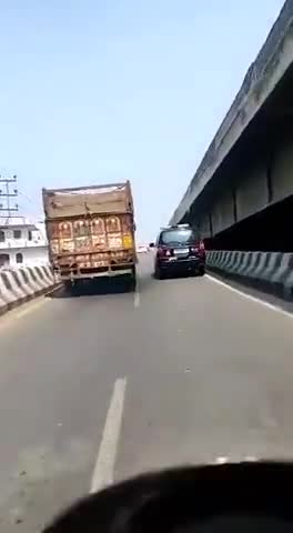 UP पुलिस का स्टंट । चलता ट्रक और चलती इनोवा। खिड़की से हाथ बाहर और झट से 'चढ़ावा' अंदर। मामला कानपुर का है।
