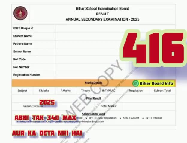 2025 dasvin kaksha ka result बिहार बोर्ड 10वीं कक्षा 2025 का रिजल्ट @BYJB #2025 में 430,,2024 में 454/432 etc