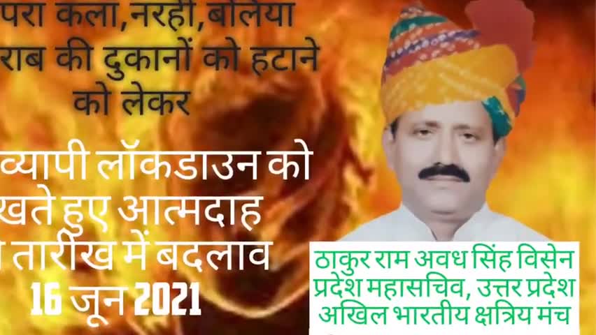बलिया: प्रदेशव्यापी लॉकडॉउन को देखते हुए प्रदेश महासचिव राम अवध सिंह ने आत्मदाह की तारीख को अगले १६ जून २०२१ तक बढ़ाया