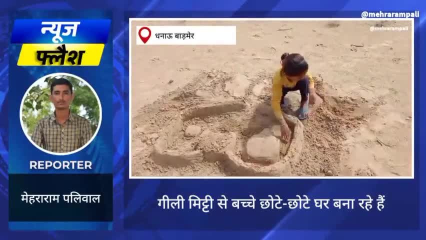 चौहटन : धनाऊ गीली मिट्टी से बच्चे छोटे-छोटे घर बना रहे हैं