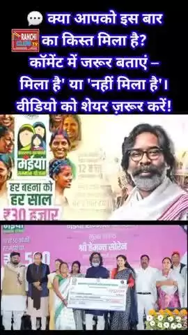 Maiya Yojana ₹2500 10वीं किस्त खाते में! चेक करें अभी #MaiyaYojana #JharkhandYojana #10वींकिस्त #₹2500Payment #SchemeUpdate #HemantSoren #GiridihNews #RanchiNews #Dhanbad #Bokaro #Palamu #WomenEmpowerment #AadharLinkAccount #ShortsNews #RanchiClubTV #hindinewsshorts