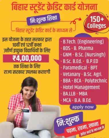 फ्री में एडमिशन करवाएं बहुत कम समय बचा है बिहार स्टूडेंट्स क्रेडिट कार्ड से।