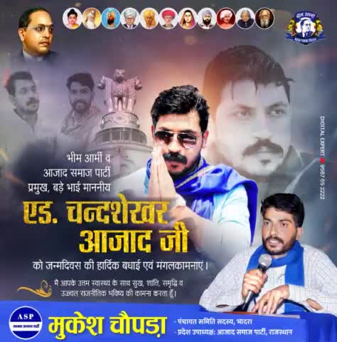21 वी सदी के नायक, सदैव बहुजन हिताय-बहुजन सुखाय की बात करने वाले, आज समूचे भारत देश बहुजन समाज के युवाओं को आगे बढ़ाने वाले, बहुजन महापुरुषों के आंदोलन को बिना डरे, बिना झुके मजबूती से आगे बढ़ाने वाले, चन्द्रशेखर आजाद जी जन्म दिवस पर ।।