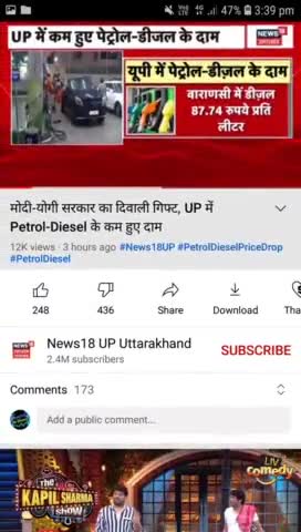 नवाबगंज: उत्तर प्रदेश सरकार का बहुत बड़ा तोहफा दीपावली के दिन पेट्रोल और डीजल के दामों में भारी गिरावट@# देखिए खास रिपोर्ट दीपक #