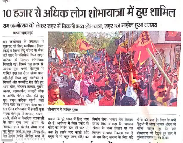 भगवान श्रीराम के जन्मोत्सव पर पूरा जमुई हुआ भगवामय -विकास 10 हज़ार से अधिक रामभक्त हुए शोभायात्रा में शामिल ! साभार :- हिंदुस्तान, दैनिक जागरण, प्रभात खबर, दैनिक भास्कर, सन्मार्ग, श्वेतपत्र एवं चौथी बाणी जमुई !