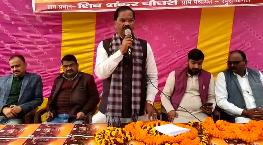 बस्ती के रैपुरा जंगल में सामुदायिक शौचालय के उद्घाटन पर लोगों को संबोधित करते सदर के विधायक श्री दयाराम चौधरी जी