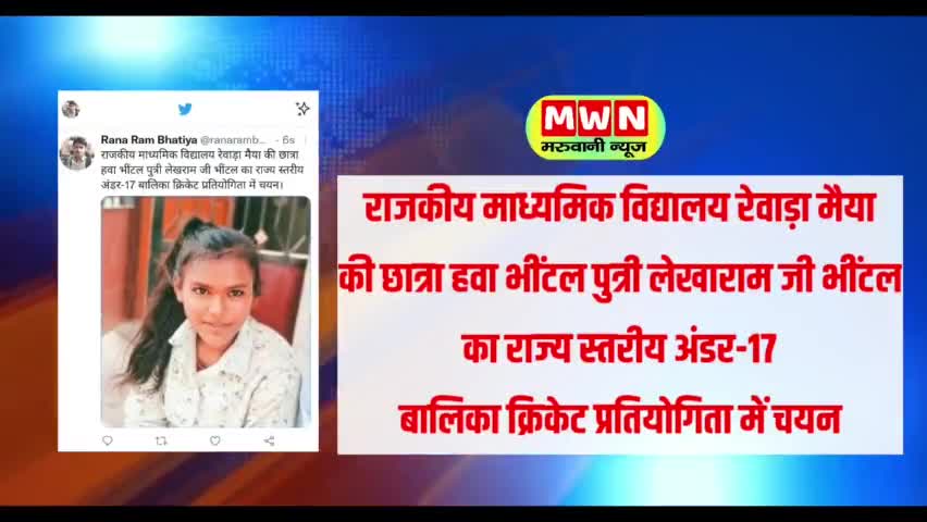 राजकीय माध्यमिक विद्यालय रेवाड़ा मैया की छात्रा हवा का राज्य स्तरीय अंडर-17 बालिका क्रिकेट प्रतियोगिता में चयन