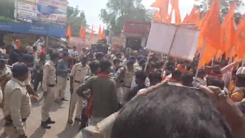 Today बजरंग दल द्वारा छिंदवाड़ा ज़िले में उग्र प्रदर्शन किया जिसमें कांग्रेस के बजरंग दल बेन करने के जवाब में प्रदर्शन