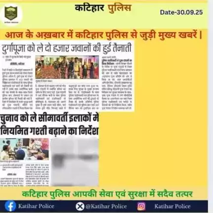 आज के अख़बार में कटिहार पुलिस से जुड़ी मुख्य खबरें |