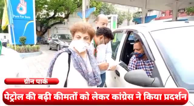 हौज खास: पेट्रोल की बढ़ी कीमतों को लेकर कांग्रेस ने ग्रीन पार्क के पेट्रोल पंप पर किया प्रदर्शन