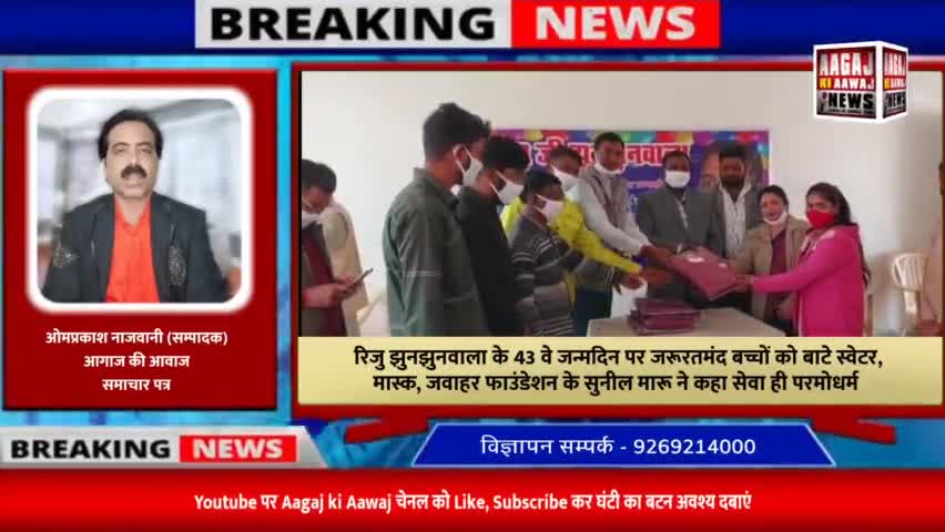 रिजु झुनझुनवाला के 43 वे जन्मदिन पर जरूरतमंद बच्चों को जवाहर फाउंडेशन सदस्यों ने बाटे स्वेटर, मास्क