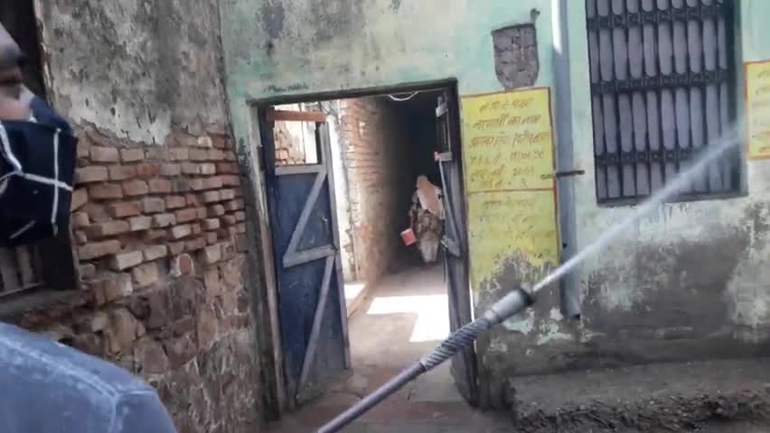 केशोरायपाटन के वार्ड नंबर 5 में सैनिटाइजर करते हुए और लोगों से घरों में रहने की अपील करते हुए इरफान अली