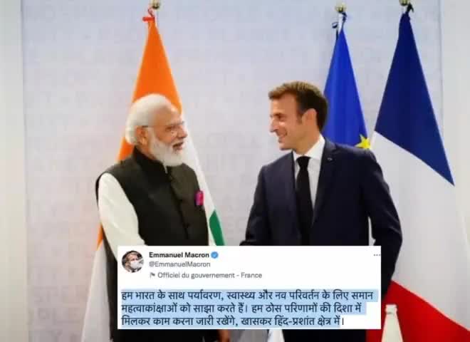 फ्रांसीसी राष्ट्रपति ने रोम में पीएम मोदी से मुलाकात के बाद हिंदी मे किया ट्वीट
