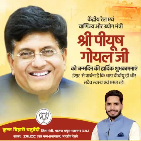 भारतीय रेलवे को नए आयाम देने वाले मा. केंद्रीय रेल, वाणिज्य एवं उद्योग मंत्री श्री पीयूष गोयल जी को जन्मदिन की बधाई।