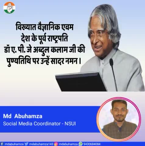 विख्यात वैज्ञानिक एवम देश के पूर्व राष्ट्रपति डॉ ए. पी. जे अब्दुल कलाम जी की पुण्यतिथि पर उन्हें सादर नमन ।