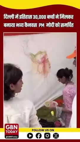 दिल्ली के कर्तव्य पथ पर 30,000 से अधिक बच्चों ने मिलकर बनाया विशाल कैनवस, प्रधानमंत्री @narendramodi को दी कला के माध्यम से अनोखी समर्पित। देशभर से आए बच्चों ने दिखाया सामूहिक संकल्प और रचनात्मक ऊर्जा। केंद्रीय मंत्री @AshwiniVaishnaw ने ट्वीट किया। #gbntoday #KartavyaPath #PMModi #LongestCanvas #delhi