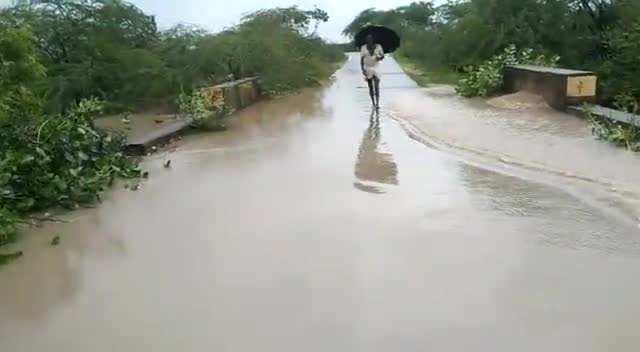 पंचायत समिति पीपलू के दोताना गांव में पुलिया में पानी न माने के कारण रोड के ऊपर से पानी निकल रहा है