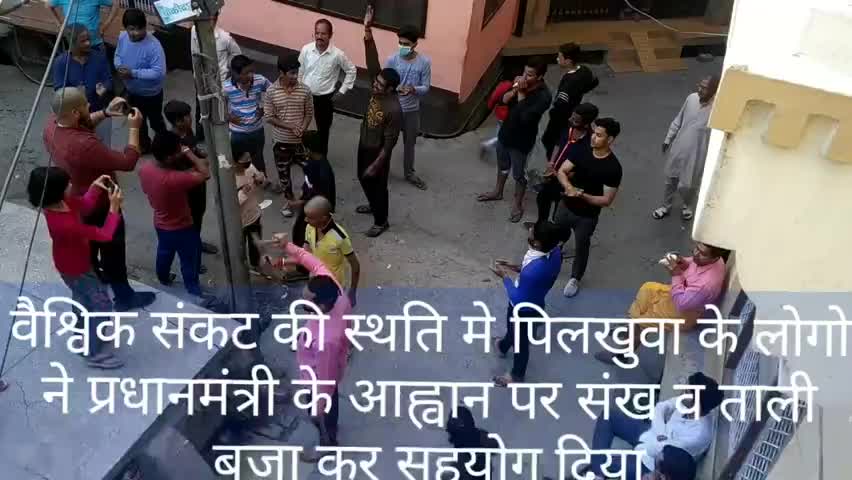 हापुड़: पिलखुवा मे प्रधानमंत्री के आह्वान शाम 5 बजे थाली और ताली बजाकर कोरोना वायरस से लड़ रहे लोगों का किया गया उत्साह वर्धन