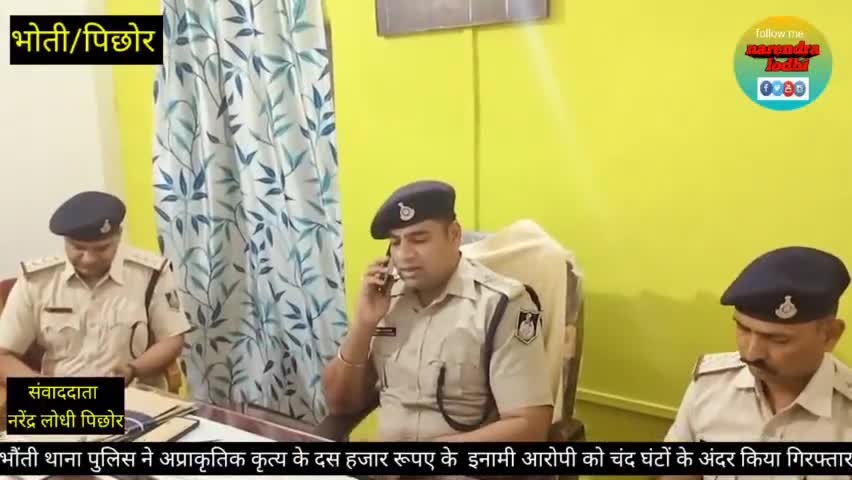 पिछोर: थाना भौंती पुलिस ने अप्राकृतिक कृत्य के 10,000/- रुपये के इनामी आरोपी को मात्र 6 घंटे में किया गिरफ्तार
