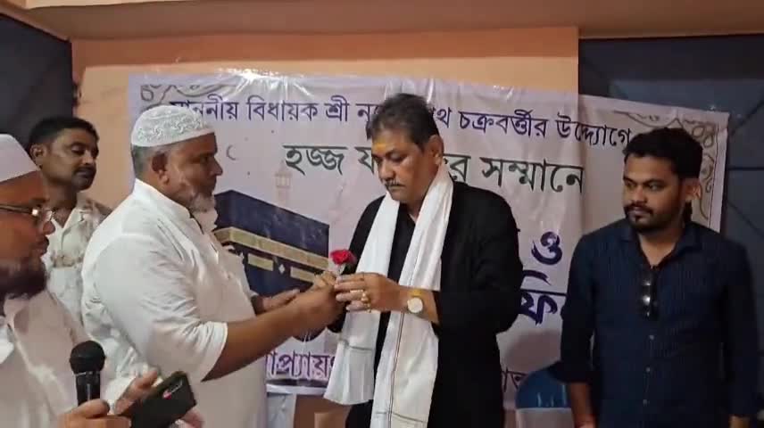 পাণ্ডবেশ্বর বিধানসভার হজ যাত্রীদের সম্মাননা জ্ঞাপন বিধায়কের। পাণ্ডবেশ্বর বিধানসভা থেকে ১৬ জন মুসলিম ধর্মীয়প্রান মানুষ মক্কা-মদিনায় হজ যাত্রায় রওনা দিচ্ছেন। তাদের শুভেচ্ছা জানাতে ও হজ যাত্রার সামগ্রী তাদের হাতে সোমবার বিকেল চারটের সময় তুলে দিলেন পাণ্ডবেশ্বর বিধানসভার বিধায়ক নরেন্দ্রনাথ চক্রবর্তী মহাশয়। বিধায়ক নরেন্দ্রনাথ চক্রবর্তী বলেন, মোরা একই বৃন্তে দুটি কুসুম হিন্দু মুসলমান, পাণ্ডবেশ্বর বিধানসভা থেকে যে যাত্রীরা হজে যাচ্ছেন তাদের শুভকামনা রইল এব
