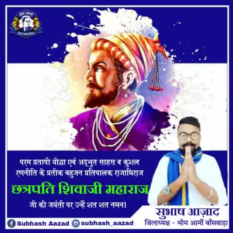 परम प्रतापी योद्धा एवं अद्भुत साहस व कुशल रणनीति के प्रतीक बहुजन प्रतिपालक राजाधिराज छत्रपति शिवाजी महाराज जी की जयंती पर उन्हें शत शत नमन।💐💐