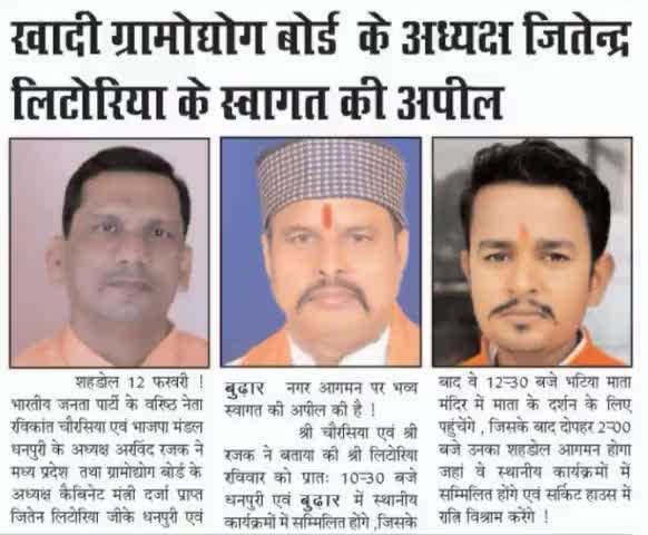 मध्य प्रदेश खादी एवं ग्रामोद्योग प्रदेश अध्यक्ष माननीय जितेंद्र लटोरिया जी का प्रथम बुढार नगर अगवान!