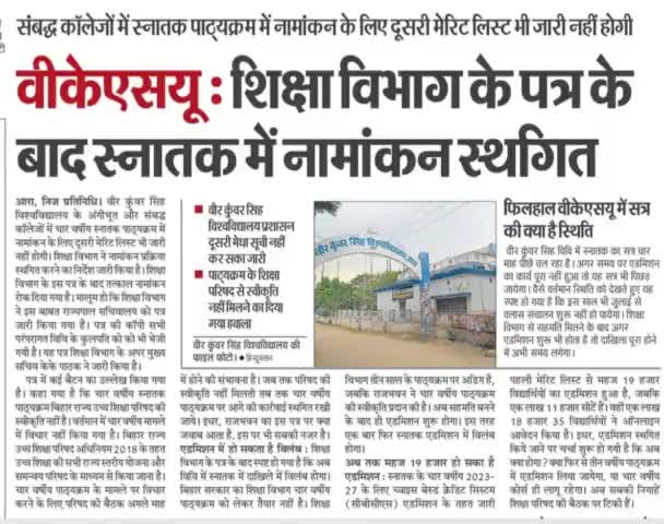 बिहार सरकार के तानाशाही रहिए कारण वीर कुंवर सिंह विश्वविद्यालय का स्नातक भाग-1 नामांकन रद्द