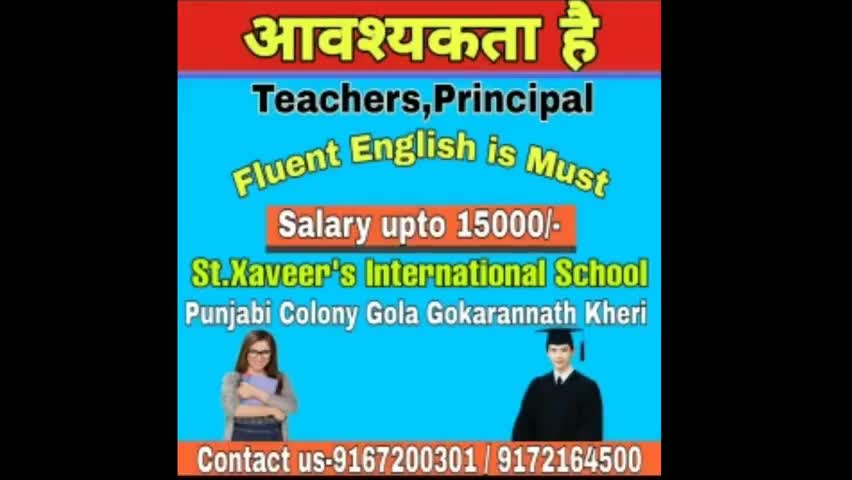 गोला गोकरणनाथ: #teachervacancy#Principavacancy .Gola Kheri St.xaveer's International School