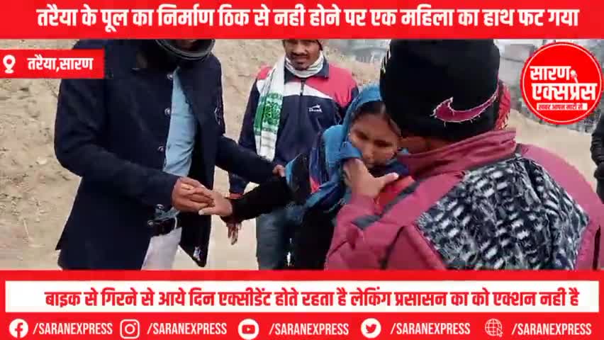 तरैया के पूल का निर्माण ठिक से नही होने पर एक महिला का हाथ फट गया बाइक से गिरने से