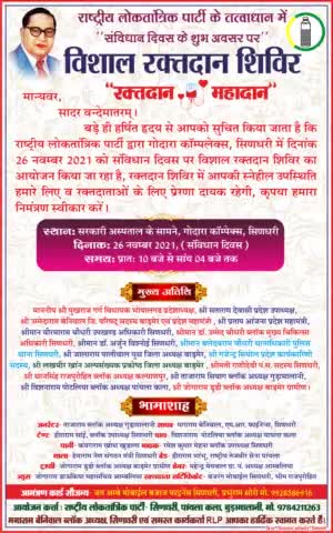 सिणधरी राष्ट्रीय लोकतांत्रिक पार्टी संविधान दिवस के उपलक्ष में विशाल रक्तदान शिविर आयोजित किया जाता है
