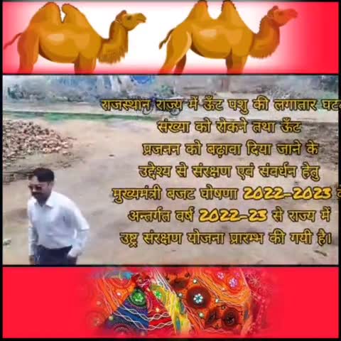 राजस्थान राज्य में ऊँट पशु की लगातार घटती संख्या को रोकने तथा ऊँट प्रजनन को बढ़ावा दिया जा रहा हे उद्देश्य से संरक्षण एवं संवर्धन हेतु मुख्यमंत्री बजट घोषणा 2022-2023 के अन्तर्गत वर्ष 2022-23 से राज्य में उष्ट्र संरक्षण योजना प्रारम्भ की ।