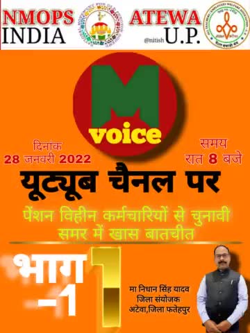 BREAKING NEWS* आज शाम 8 बजे *Mvoive* यूट्यूब चैनल पर *पुरानी पेंशन और निजीकरण* विषय पर मा निधान सिंह यादव