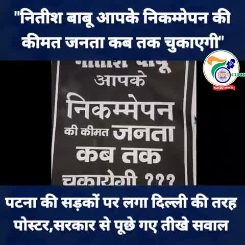 नितीश बाबू आपके निकम्मेपन की कीमत जनता कब तक चुकाएगी पोस्टर से पटा #पटना ।