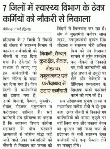 ठेकेदारो के द्वारा लगाए स्वास्थ्य कर्मचारियों को महमारी के समय बिना नोटिस के हटाया गया## Halth minister#@
